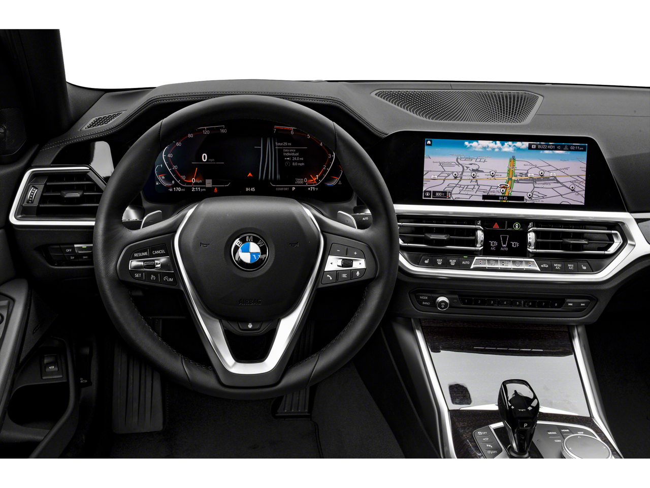 10 Speakers, 4-Wheel Disc Brakes, ABS brakes, Active Blind Spot Detection, Active Driving Assistant, Air Conditioning, Alloy wheels, AM/FM radio, Apple CarPlay Compatibility, Auto-dimming door mirrors, Auto-dimming Rear-View mirror, Automatic temperature control, BMW Assist eCall, BMW TeleServices, Brake assist, Bumpers: body-color, Comfort Access Keyless Entry, Compass, Connected Package Pro, Convenience Package, Delay-off headlights, Driver door bin, Driver vanity mirror, Dual front impact airbags, Dual front side impact airbags, DVD Area Coding (North America), Electronic Stability Control, Emergency communication system: BMW Assist eCall, Exterior Parking Camera Rear, Four wheel independent suspension, Front anti-roll bar, Front Bucket Seats, Front Center Armrest, Front dual zone A/C, Front reading lights, Fully automatic headlights, Garage door transmitter, Genuine wood console insert, Genuine wood dashboard insert, Hands-Free Bluetooth® & USB Audio Connection, HD Radio, Heated door mirrors, Heated Front Seats, Hi-Fi Sound System, Illuminated entry, Leather Shift Knob, Leather steering wheel, LED Headlights w/Cornering Lights, Live Cockpit Pro w/Navi, Low tire pressure warning, Lumbar Support, Memory seat, Navigation, Navigation System, Occupant sensing airbag, Outside temperature display, Overhead airbag, Panic alarm, Park Distance Control, Passenger door bin, Passenger vanity mirror, Power door mirrors, Power driver seat, Power Front Seats, Power moonroof, Power passenger seat, Power steering, Power windows, Radio Control US, Radio data system, Radio: AM/FM Audio System, Rain sensing wipers, Rear air conditioning, Rear anti-roll bar, Rear reading lights, Rear seat center armrest, Rear window defroster, Remote keyless entry, Security system, SensaTec Upholstery, SiriusXM Satellite Radio, Speed control, Speed-sensing steering, Speed-Sensitive Wipers, Split folding rear seat, Sport Seats, Sport steering wheel, Steering wheel mounted audio controls, Tachometer, Telescoping steering wheel, Tilt steering wheel, Traction control, Trip computer, Turn signal indicator mirrors, Variably intermittent wipers, Wheels: 18 x 7.5 V-Spoke Bi-Color Orbit Grey.