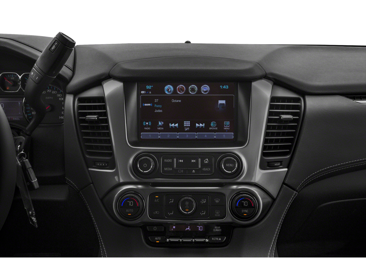 18 x 8.5 Aluminum Wheels, 1st & 2nd Row Color-Keyed Carpeted Floor Mats, 2nd Row 60/40 Split-Folding Manual Bench, 2nd Row Pwr Release 60/40 Split Folding Bench Seat, 3.08 Rear Axle Ratio, 3rd Row 60/40 Power Fold Split-Bench, 3rd Row Manual 60/40 Split-Folding Fold Flat Bench, 3rd row seats: split-bench, 4-Wheel Antilock Disc Brakes w/Brake Assist, 4-Wheel Disc Brakes, 5 12-Volt Auxiliary Power Outlets, 9 Speakers, ABS brakes, Adjustable pedals, Air Conditioning, Alloy wheels, AM/FM radio: SiriusXM, Apple CarPlay/Android Auto, Auto High-beam Headlights, Auto-Dimming Inside Rear-View Mirror, Auto-dimming Rear-View mirror, Automatic Emergency Braking, Automatic temperature control, Black Assist Steps, Bluetooth® for Phone, Bose Premium 9-Speaker System, Brake assist, Bumpers: body-color, Cargo Net, CD player, Color-Keyed Carpeting Floor Covering, Compass, Delay-off headlights, Driver door bin, Driver Inboard & Front Passenger Airbags, Driver vanity mirror, Dual front impact airbags, Dual front side impact airbags, Electronic Cruise Control w/Set & Resume Speed, Electronic Stability Control, Emergency communication system: OnStar and Chevrolet connected services capable, Enhanced Driver Alert Package (Y86), Extended-Range Remote Keyless Entry, Exterior Parking Camera Rear, Floor Console, Fog Lamps, Forward Collision Alert, Front & Rear Park Assist, Front anti-roll bar, Front Bucket Seats, Front Center Armrest, Front dual zone A/C, Front Heated Reclining Bucket Seats, Front Passenger 6-Way Power Seat Adjuster, Front reading lights, Front wheel independent suspension, Fully automatic headlights, Garage door transmitter, Hands Free Power Liftgate, HD Radio, Heated 2nd Row Outboard Seats, Heated door mirrors, Heated front seats, Heated Leather Wrapped Steering Wheel, Illuminated entry, IntelliBeam Headlamps, Lane Change Alert w/Side Blind Zone Alert, Lane Keep Assist w/Lane Departure Warning, Leather steering wheel, Leather-Appointed Seat Trim, Leather-Wrapped Steering Wheel, Low tire pressure warning, Luxury Package, Memory seat, Memory Settings, Occupant sensing airbag, Outside temperature display, Overhead airbag, Overhead console, Panic alarm, Passenger door bin, Passenger vanity mirror, Passive Entry System, Pedal memory, Power door mirrors, Power driver seat, Power Liftgate, Power passenger seat, Power Release 2nd Row Bucket Seats, Power steering, Power Sunroof, Power Tilt & Telescopic Steering Column w/Memory, Power windows, Power-Adjustable Accelerator & Brake Pedals, Power-Folding Heated Outside Mirrors, Preferred Equipment Group 1LT, Premium audio system: Chevrolet MyLink, Premium Smooth Ride Suspension Package, Push Button Keyless Start, Radio: Chevrolet Infotainment AM/FM Stereo, Radio: Chevrolet Infotainment AM/FM Stereo w/Nav, Rain sensing wipers, Rear air conditioning, Rear anti-roll bar, Rear Cross Traffic Alert, Rear Park Assist w/Audible Warning, Rear reading lights, Rear Seat Blu-Ray/DVD Entertainment System, Rear seat center armrest, Rear window defroster, Rear window wiper, Remote keyless entry, Remote Vehicle Start, Roof-Mounted Luggage Rack Side Rails, Security system, Single-Slot CD/MP3 Player, SiriusXM NavTraffic, SiriusXM Radio, Speed control, Speed-sensing steering, Split folding rear seat, Spoiler, Steer