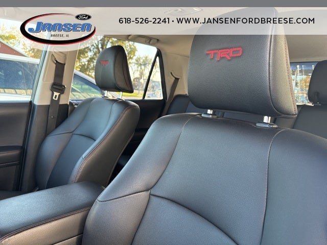 3.727 Axle Ratio, 4-Wheel Disc Brakes, 8 Speakers, ABS brakes, Air Conditioning, Alloy wheels, AM/FM radio: SiriusXM, Anti-whiplash front head restraints, Apple CarPlay/Android Auto, Auto High-beam Headlights, Auto-dimming Rear-View mirror, Black Roof Rails, Body Color Heated Mirrors, Brake assist, Bumpers: body-color, Compass, Driver door bin, Driver vanity mirror, Dual front impact airbags, Dual front side impact airbags, Electronic Stability Control, Emergency communication system: Safety Connect with 1-year trial, Exterior Parking Camera Rear, Front anti-roll bar, Front Bucket Seats, Front Center Armrest, Front fog lights, Front reading lights, Front wheel independent suspension, Garage Door Opener, Garage door transmitter: HomeLink, Heated door mirrors, Heated front seats, Illuminated entry, Knee airbag, Leather Shift Knob, Leather steering wheel, Low tire pressure warning, Navigation System, Occupant sensing airbag, Outside temperature display, Overhead airbag, Overhead console, Panic alarm, Passenger door bin, Passenger vanity mirror, Power door mirrors, Power driver seat, Power passenger seat, Power steering, Power windows, Radio: Premium Audio w/Dynamic Navigation, Rear anti-roll bar, Rear seat center armrest, Rear window defroster, Rear window wiper, Remote keyless entry, Roof rack, Security system, Softex Synthetic Leather Seat Trim, Speed control, Speed-sensing steering, Split folding rear seat, Spoiler, Steering wheel mounted audio controls, Tachometer, Telescoping steering wheel, Tilt steering wheel, Traction control, Trip computer, Turn signal indicator mirrors, Variably intermittent wipers, Wheels: 17 Matte Black Flow-Formed TRD Alloy.