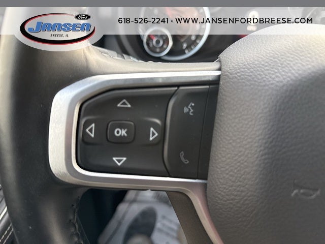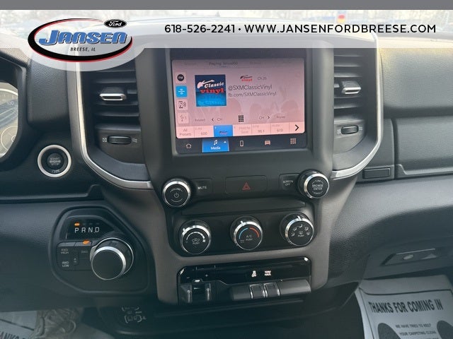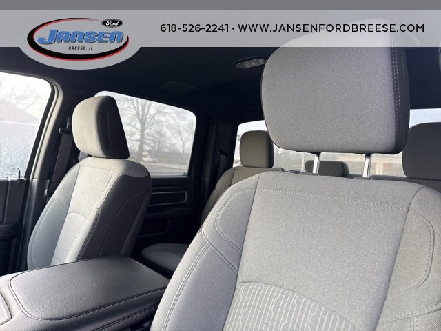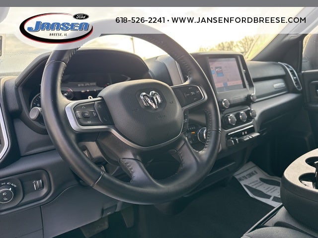 2 Way Rear Headrest Seat, 2nd Row In Floor Storage Bins, 3.73 Axle Ratio, 4 Way Front Headrests, 4-Wheel Disc Brakes, 40/20/40 Split Bench Seat, 4G LTE Wi-Fi Hot Spot, 6 Speakers, 8.4 Touchscreen Display, 9 Alpine Speakers w/Subwoofer, ABS brakes, Active Noise Control System, Air Conditioning, Anti-Spin Differential Rear Axle, Apple CarPlay, Auto Power-Folding Mirrors, Bed Utility Group, Big Horn IP Badge, Black Exterior Mirrors, Bluetooth® Handsfree Phone & Audio, Brake assist, Bumpers: chrome, Center Hub, Center Stack Storage Drawer, Chrome Flat Cab-Length Side Steps, Cloth 40/20/40 Bench Seat, Compass, Connectivity - US/Canada, Delay-off headlights, Driver door bin, Dual front impact airbags, Dual front side impact airbags, Dual Glove Boxes, Electronic Stability Control, Electronically Controlled Throttle, Emergency communication system: SiriusXM Guardian, Exterior Mirrors Courtesy Lamps, Exterior Mirrors w/Heating Element, Exterior Mirrors w/Supplemental Signals, Foam Bottle Insert (Door Trim Panel), Footwell Courtesy Lamp, For Details, Visit DriveUconnect.com, For More Info, Call 800-643-2112, Forward & Reverse Utility Lights, Front anti-roll bar, Front Armrest w/Cupholders, Front Center Armrest w/Storage, Front Center Seat Cushion Storage, Front Fog Lamps, Front License Plate Bracket, Front reading lights, Front Seat Back Map Pockets, Fully automatic headlights, Global Telematics Box Module (TBM), Glove Box Lamp, Google Android Auto, GPS Antenna Input, Heated door mirrors, Illuminated entry, Integrated Center Stack Radio, Integrated Voice Command w/Bluetooth®, Leather Wrapped Steering Wheel, LED Bed Lighting, Level 1 Equipment Group, Locking Lower Glove Box, Low tire pressure warning, Manual Adjust 4-Way Driver Seat, Manual Adjust 4-Way Front Passenger Seat, Manufacturer's Statement of Origin, Mirror Running Lights, MOPAR Deployable Bed Step, MOPAR Spray In Bedliner, Occupant sensing airbag, Outside temperature display, Overhead airbag, Overhead console, Panic alarm, ParkView Rear Back-Up Camera, Passenger door bin, Passenger vanity mirror, Power 2-Way Driver Lumbar Adjust, Power Adjust 8-Way Driver Seat, Power Adjust Mirrors, Power Adjustable Convex Aux Mirrors, Power door mirrors, Power Heated Fold Telescope Mirrors, Power steering, Power Telescoping Mirrors, Power windows, Premium Cloth 40/20/40 Bench Seat (DISC), Protection Group, Quick Order Package 2GZ Big Horn, Radio data system, Radio: Uconnect 3 w/5 Display, Radio: Uconnect 5 W w/8.4 Display, Rear 60/40 Folding Seat, Rear anti-roll bar, Rear Dome w/On/Off Switch Lamp, Rear Folding Seat, Rear seat center armrest, Rear step bumper, Remote keyless entry, Remote USB Port - Charge Only, Selectable Tire Fill Alert, SiriusXM Radio Service, SiriusXM Satellite Radio, Speed control, Steering Wheel Mounted Audio Controls, Storage Tray, Tachometer, Tilt steering wheel, Tip Start, Tow Hooks, Traction control, Trip computer, Turn signal indicator mirrors, Variably intermittent wipers, Voltmeter, Wheels: 18 x 8.0 Polished Aluminum, Wheels: 18 x 8.0 Steel Chrome Clad.